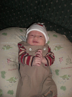 For now, I'll just leave you all with a nice picture of Baby Noah throwing up gang signs in his camouflage blanket (ok, maybe its a peace sign - who knows).